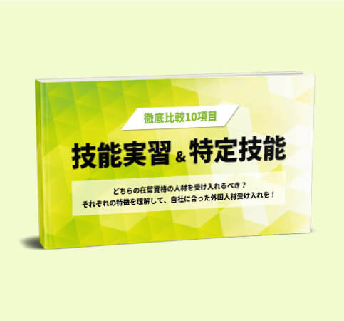 人材会社および受入企業の皆様に向けて、技能実習と特定技能で主要10項目において比較を行い、それぞれのメリット・デメリットもご説明しています。